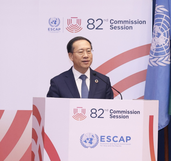 2026年4月20日,外交部副部长马朝旭出席在泰国曼谷举行的联合国亚太经社会第82届年会部长级会议并发表讲话。