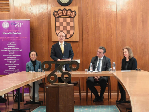 2026年4月21日,驻克罗地亚使馆与萨格勒布大学人文与社会科学学院共同举办2026年国际中文日活动。驻克罗地亚大使齐前进、学院院长顿契尼奇、汉学系主任布连出席,200余名师生参加。